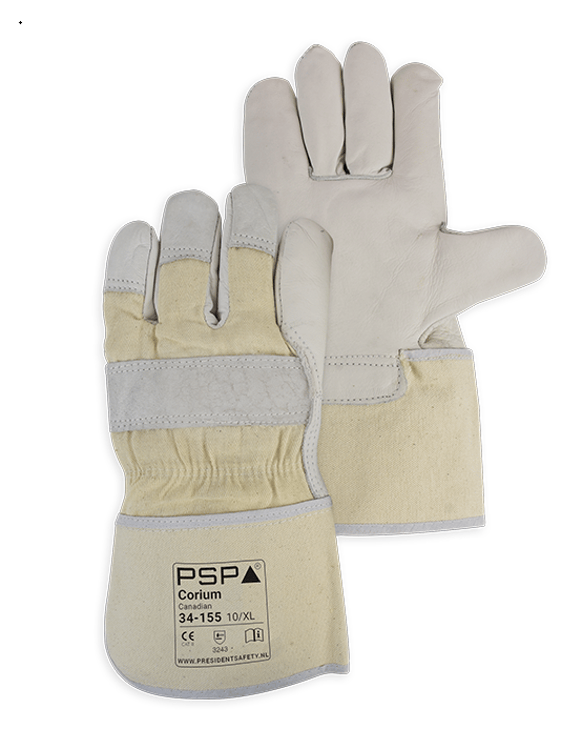 OMSCHRIJVING De PSP Corium Canadian 34-155 is een werkhandschoen, type “Amerikaantje”, gemaakt van eersteklas rundnerfleder van 1,0 - 1,2 mm dikte. De handschoen is vrij van Chromium VI. De rug is van keperdoek, de kap is uitgevoerd in een zware kwaliteit keperdoek en heeft een lengte van 10 cm. Verder is deze handschoen voorzien van een goede molton voering in de handpalm voor extra comfort en vochtopname.